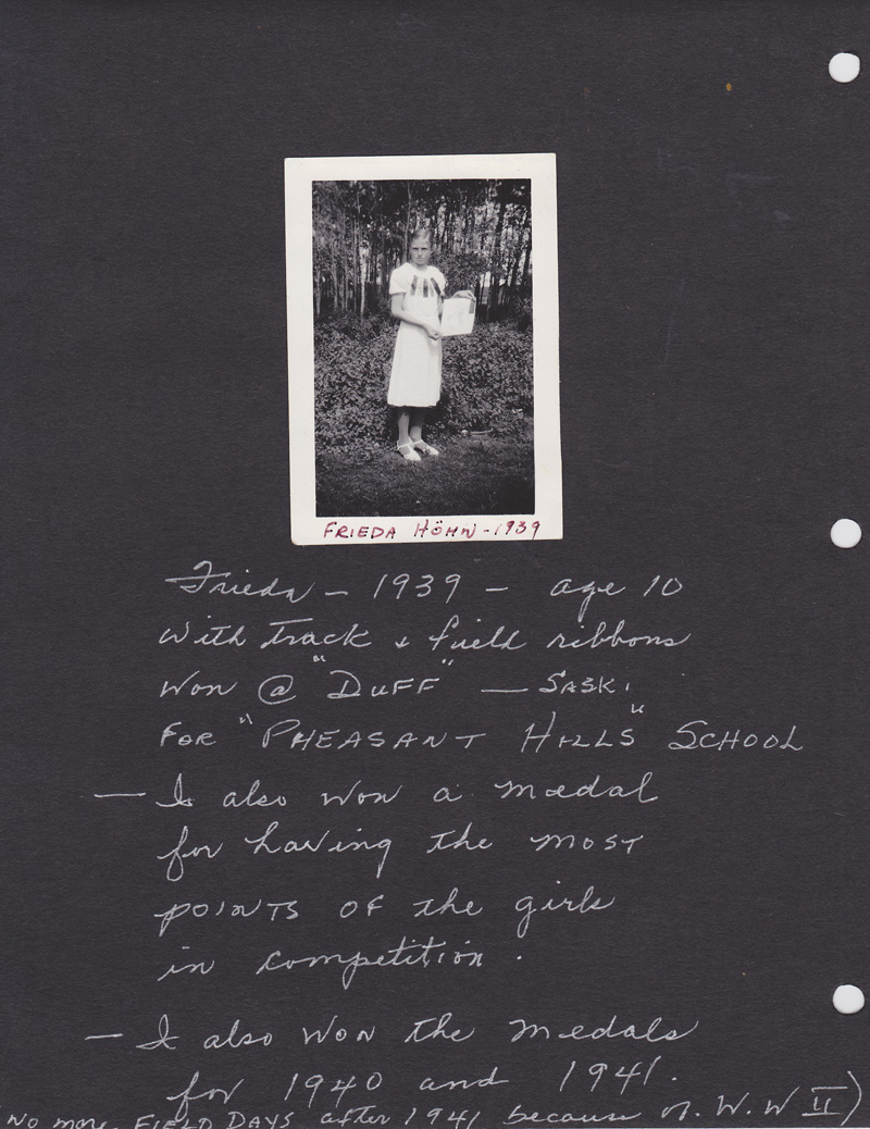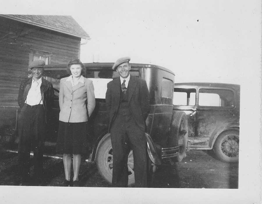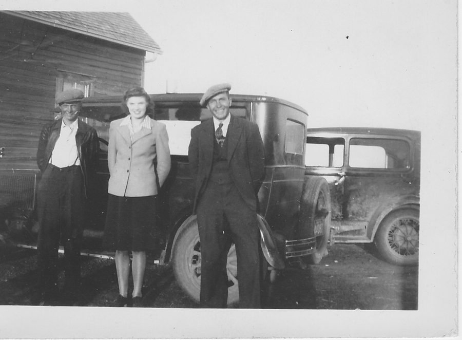 Millie and Bertha together (during the summer school holidays) would herd the cows on the road allowance during the day so they could eat the grass in the ditches. This was 1935 and a very dry year. While the cows grazed, Millie and Bertha occupied themselves doing "whatever". On this particular day, they sat on the edge of a pit - a little flat depression that had been scooped out for road maintenance.